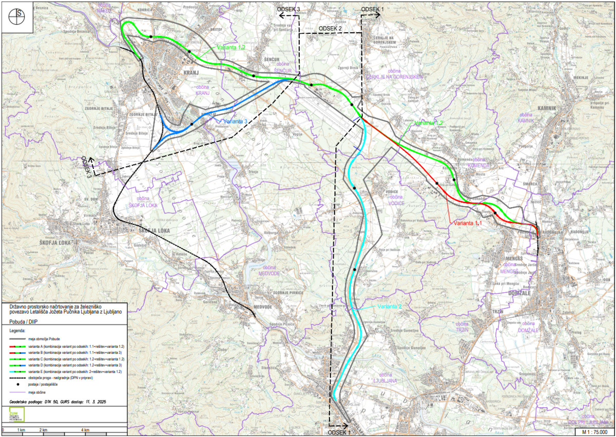 Odsek 1: tri variantne trase (prek naselij ali ob avtocestnem koridorju),