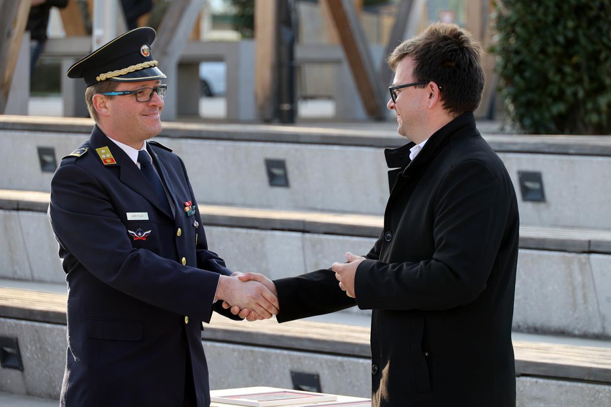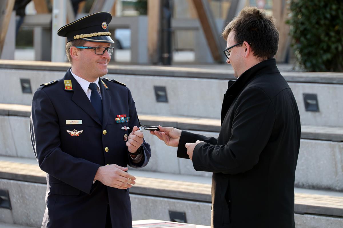 Zbrane so nagovorili župan Nejc Smole, predsednik Gasilske zveze Medvode, Miha Šušteršič in Simon Černe, poveljnik gasilske zveze regije Ljubljana. V prisotnosti članov vseh šestih prostovoljnih gasilskih društev iz naše občine je župan Nejc Smole ključe vozila predal poveljniku Gasilske zveze Medvode, Anžetu Šilarju.